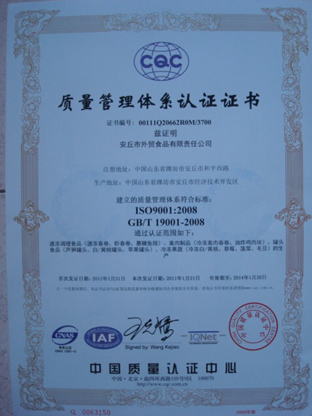 公司产品通过HACCP,BRC,IFS认证HACCP认证BRC认证IFS认证